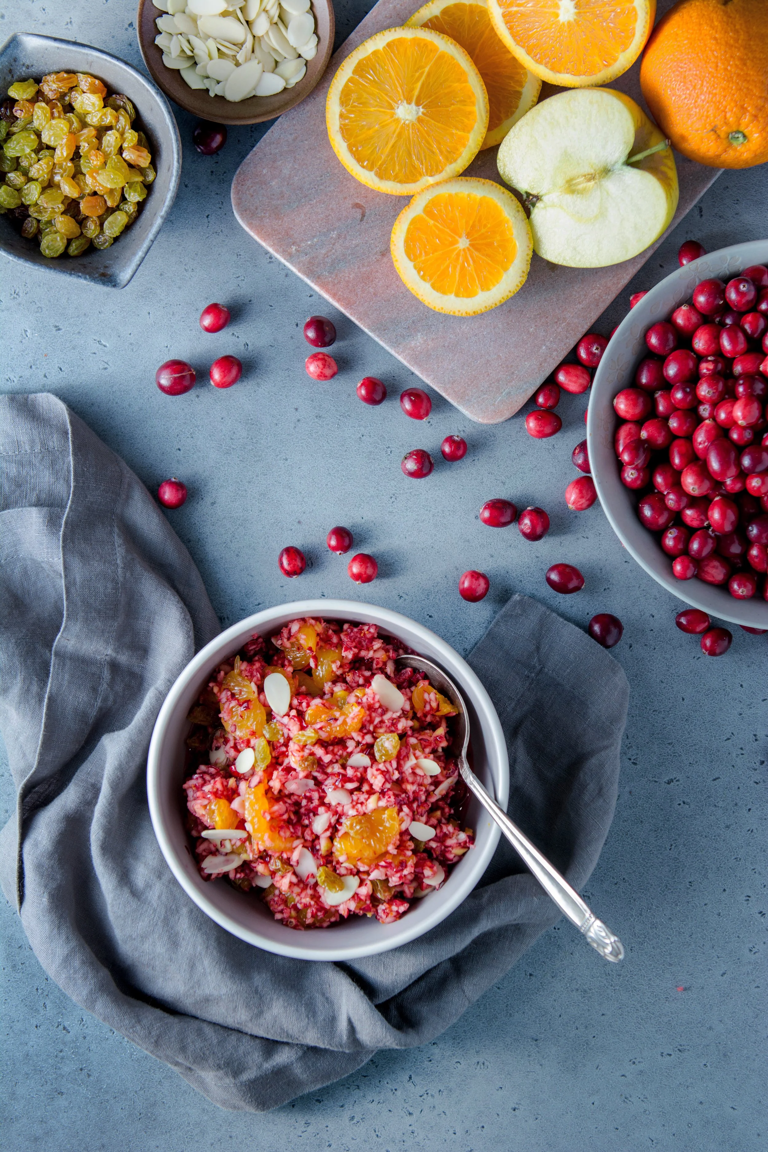 Tart, sweet, slightly nutty, and texturally complex, you will never want for canned cranberries again! Serve as you would a traditional cranberry relish, or add to a sandwich with cream cheese, turkey and baby spinach for an unbeatable condiment.